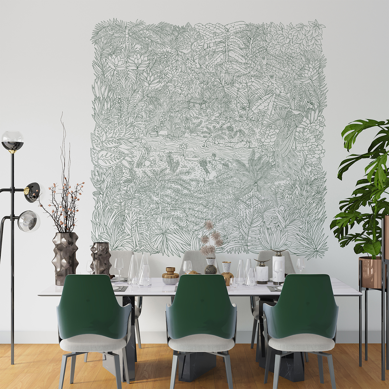 Aujourd’hui, elle crée sur mesure pour des maisons d’exception, des chefs étoilés ou des hôtels emblématiques, en donnant vie à des fresques murales et des illustrations qui dialoguent avec l’espace. Chaque projet est pour elle un geste artistique précis, porté par une écoute attentive et une vision poétique du décor.